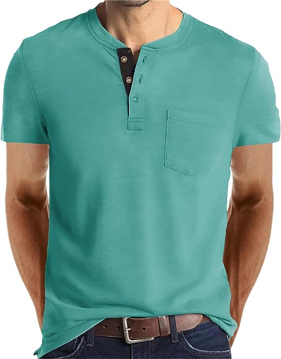 Lexiart Mens Fashion Henley Shirts Long Sleeve Button Cotton T-Shirt with Pocket